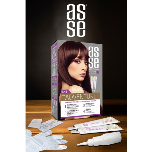 Asse Adventure Set Saç Boyası, Kalıcı ve Canlı Renkler 1+1 İki Kullanım Seti (No:6.43 Koyu Kumral Bakır Dore)