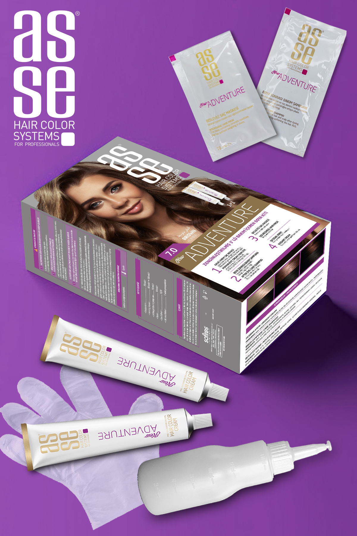 Asse tarafından geliştirilen Adventure Set Saç Boyası No:7.0 Kumral, cildinize ihtiyaç duyduğu bakımı sağlamak için özel olarak formüle edilmiştir.